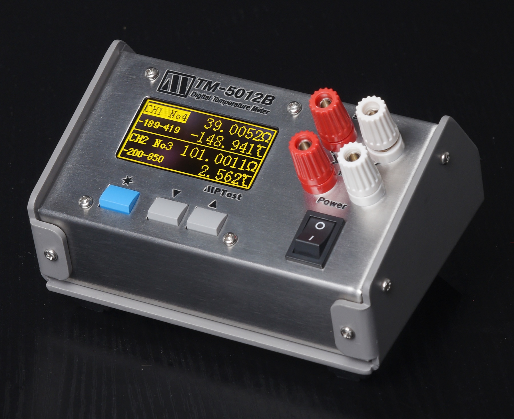 The TM-5012B is a compact, portable, and cost-effective handheld thermometer. Although it does not include an internal temperature control device, it minimizes the impact of ambient temperature variations through temperature compensation technology, meeting the measurement accuracy requirements for Standard Platinum Resistance Thermometers (SPRTs). The unit is also compatible with PT-100 industrial platinum resistance thermometers. It features built-in storage for calibration parameters of up to five thermometers, allowing users to directly select settings by thermometer serial number. Powered by a built-in rechargeable battery, the device is equipped with an OLED display and supports data download functionality.