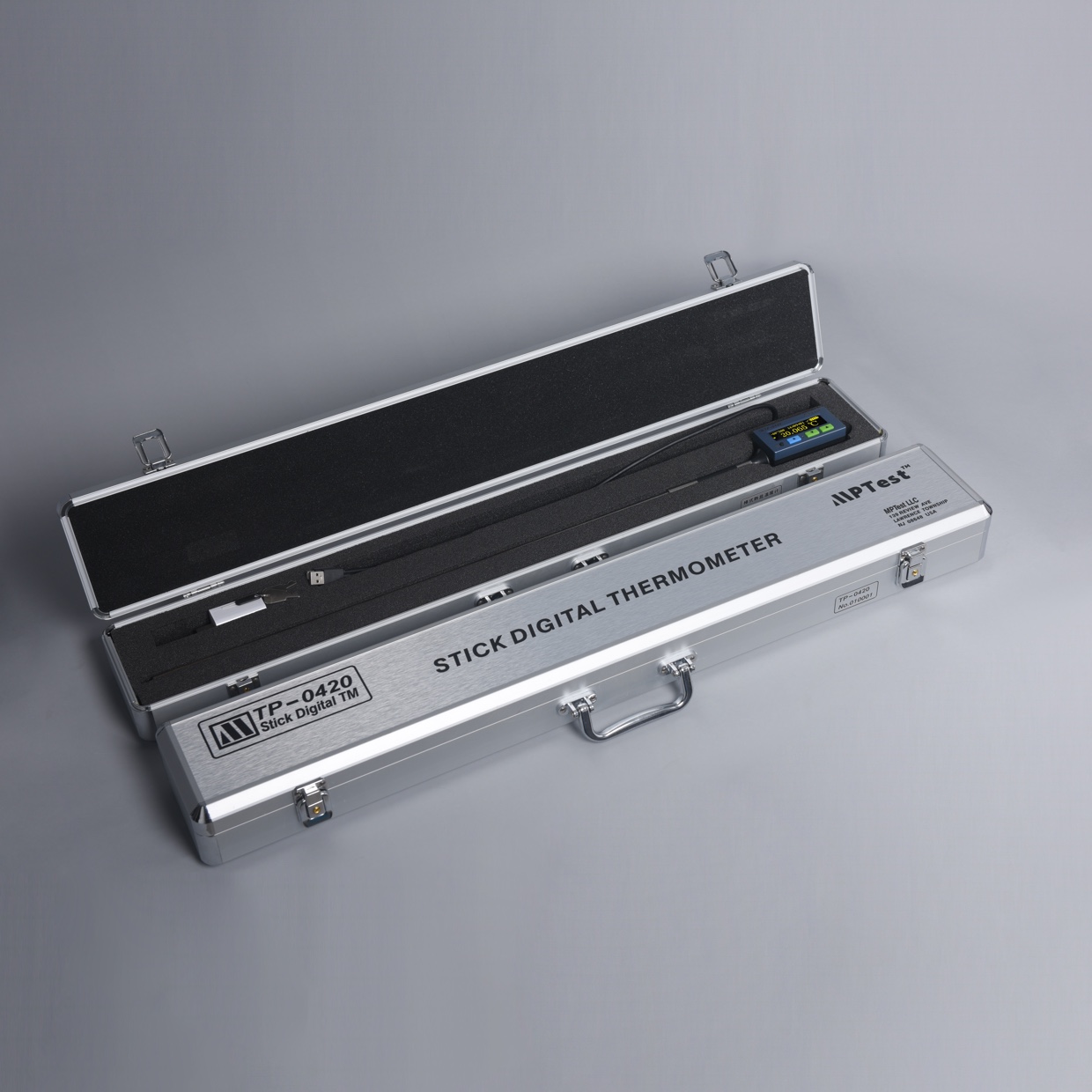 The TP-0420 is an industrial standard thermometer designed by MPTest to replace traditional mercury thermometers. It features a digital direct-reading display with a range of -80℃ (-112°F) to 300℃ (572°F), available in long-stem and short-stem versions, with an accuracy of ±0.05℃ (±0.09°F)/year. Error adjustment functions for standard thermometers are password-protected. It includes a rechargeable battery with USB Type-C charging and data transfer interface. The adjustable omnidirectional viewing angle enhances readability. It offers large-capacity data storage (1GB) and direct Excel export functionality.